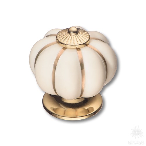 S-101 GOLD CREAM Ручка кнопка керамика с металлом, молочный/глянцевое золото